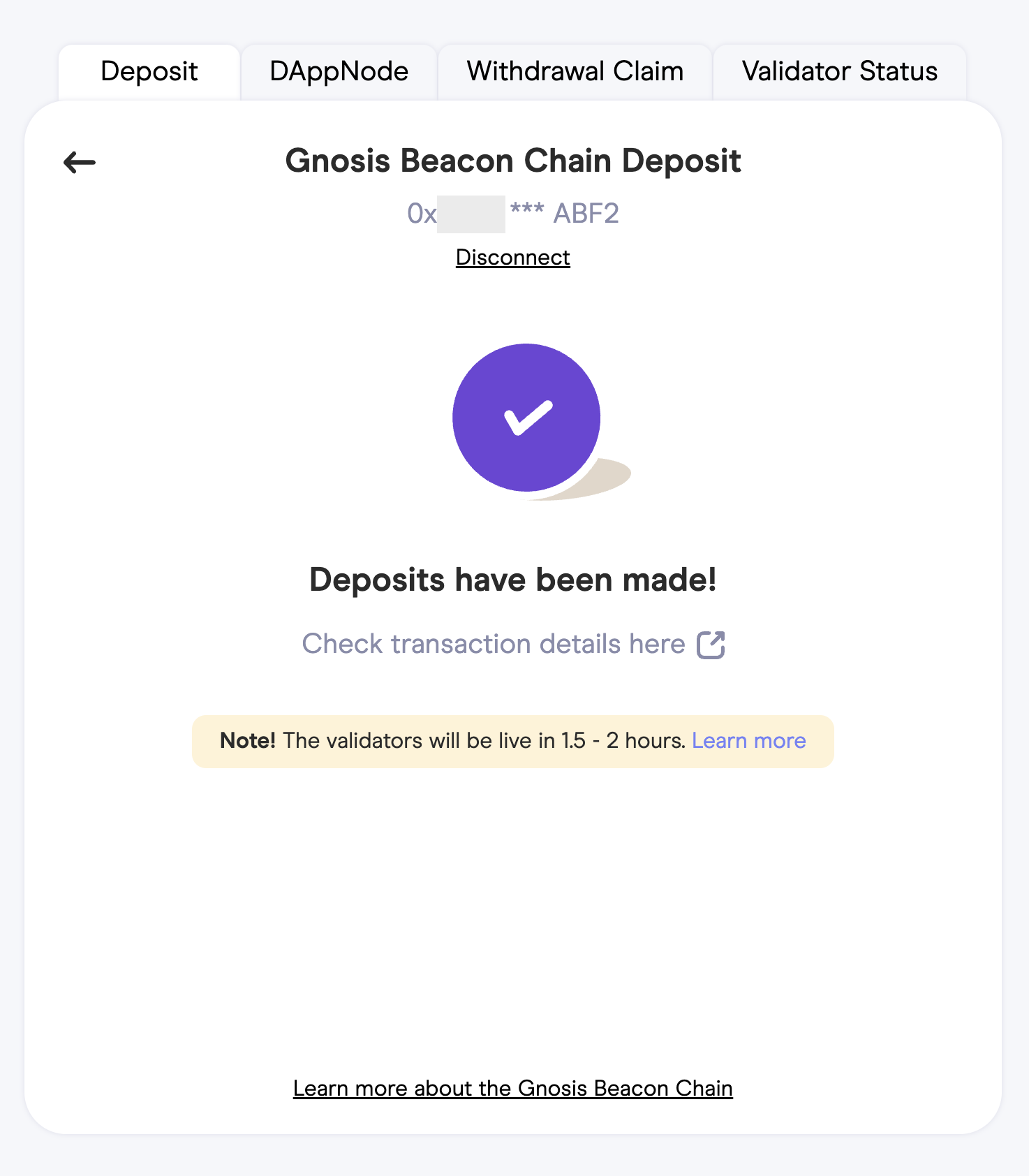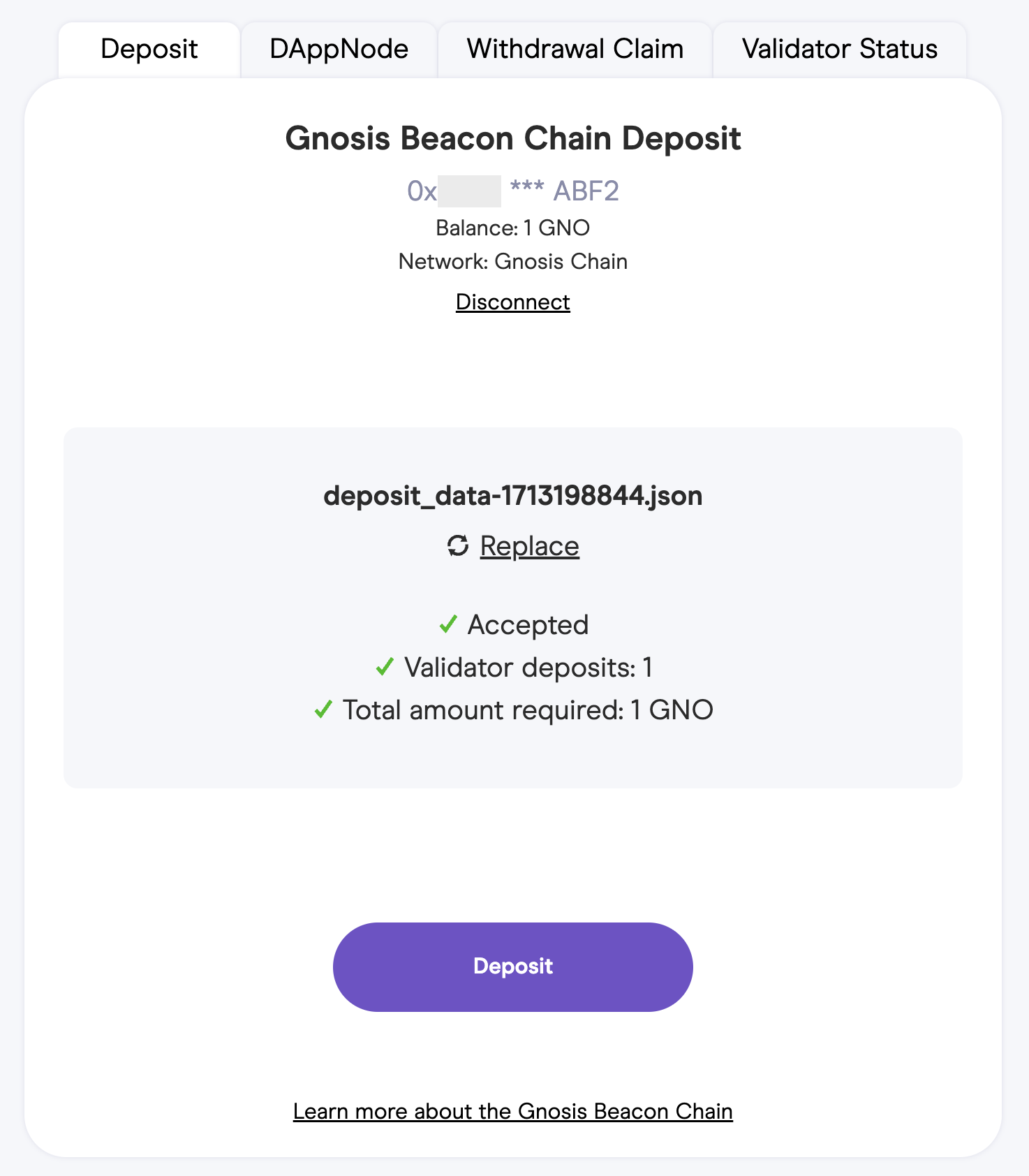 Congratulations on successfully making your GNO deposit!