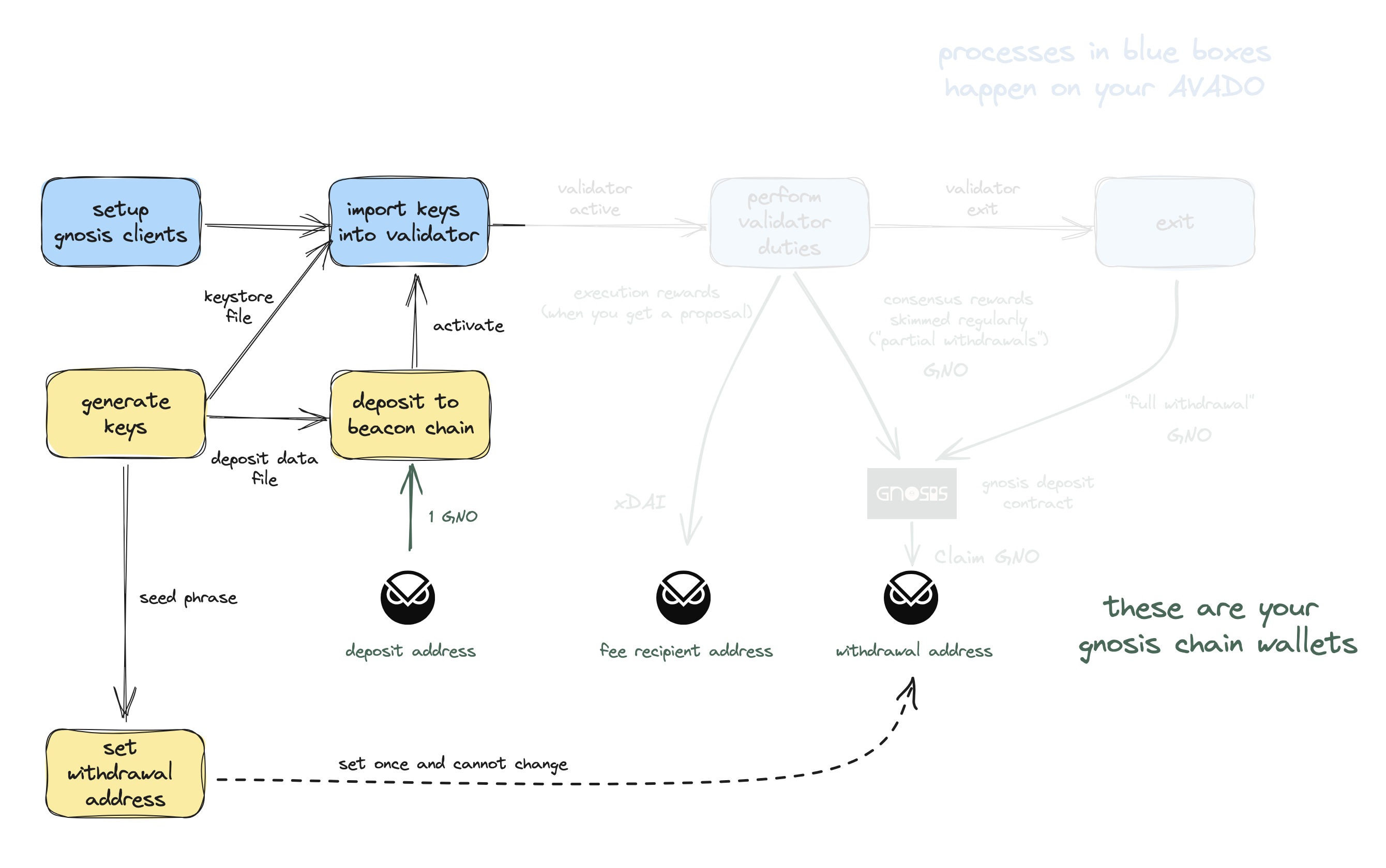 Let's take a moment to revisit [The Gnosis Staker's Journey](https://docs.ava.do/more-staking-opportunities/gnosis-staking) diagram to understand what you have accomplished so far.