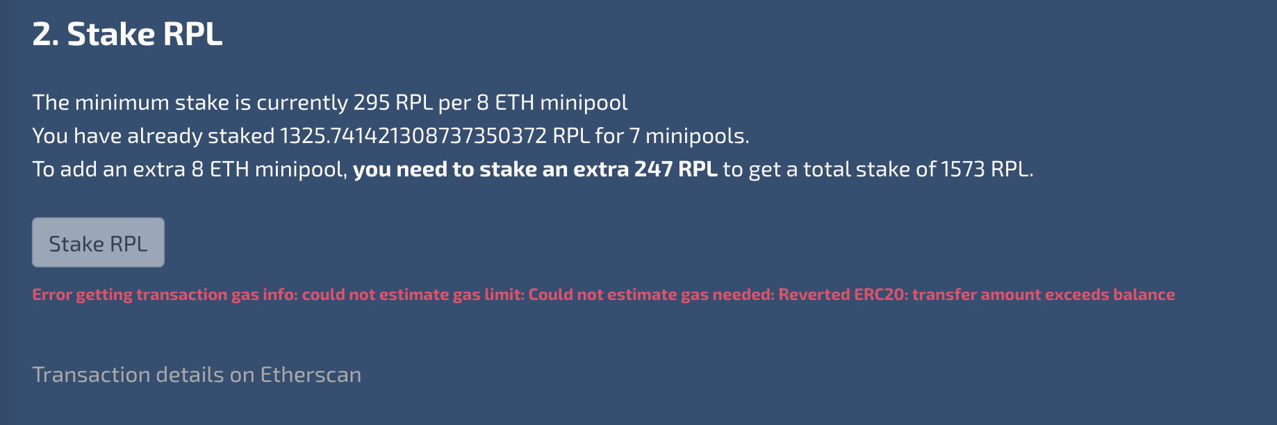 <img src="https://2996176873-files.gitbook.io/~/files/v0/b/gitbook-x-prod.appspot.com/o/spaces%2F0YTdumceG05uJMtaEgaT%2Fuploads%2Ff8eX1ZzFFKqUvckRvAxw%2Feth-rpl-error-getting-gas.png?alt=media&#x26;token=bb13b764-e37d-4cc2-a270-be771e1e73cf" alt="" data-size="original">
